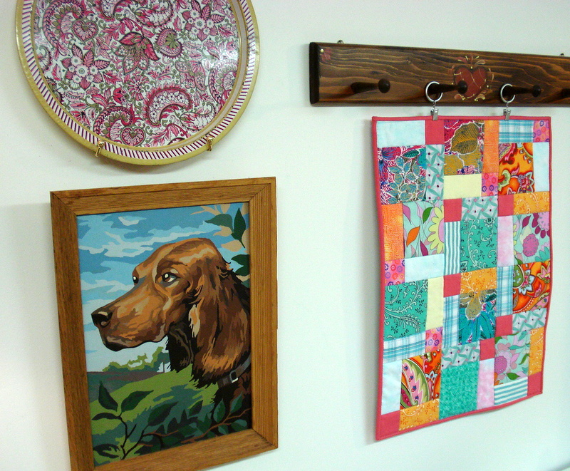 The pattern is called Breathe. I really like snail's trail quilts and know there are more in store for me in the future. I challenged myself to use a funky vintage apple print I found at the (wait for it...) thrift store.